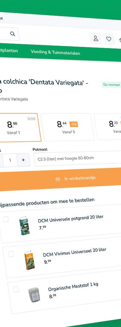 Voor het Groene Paradijs hebben wij het mogelijk gemaakt om staffelkorting te geven wanneer de klant kiest om bijvoorbeeld 5 of 10 van dezelfde planten aan te schaffen. Het Groene Paradijs beloont de klant dan ook met korting als ze méér stuks van een bepaald product aanschaffen. Hierdoor is de klant sneller geneigd om meer producten aan te schaffen